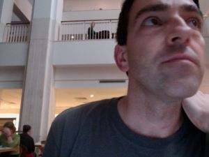 Progress report: some words written. In an attempt to psychologically kickstart my script, I decided to scrap what I’d written so far, even though I liked it, and even though I’ve been honing the first scene, because I suspect that “honing” has been a displacement activity, which was preventing me from “writing the next scene” (apologies for the writer’s jargon). Anyway, since starting again, I have reached scene three. This can’t be interesting, but there it is. I’m way too close to it to know whether the new scenes are funny enough in terms of comedy or efficient enough in terms of story yet. That’s why I’m having a break to eat my packed lunch in the cafeteria, where, unlike the vast reading rooms, there is noise, even during the so-called “quiet” fortnight of the Olympics. (One thing I love about the British Library, which I also love about London generally, is that you are always in the middle of a maelstrom of different accents and languages. I would miss this if I lived in the middle of nowhere, as I am sometimes romantically drawn to dreaming about.)