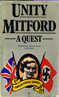 This can be of almost zero interest to anyone lacking my own Mitford sisters obsession, but I’m going to forge on and go public with it anyway, as I’ve mentioned this anomaly a couple of times before, but never got round to scanning in the evidence. Anyway … Above is the cover of the 1978 Star paperback edition of Unity Mitford: A Quest by David Pryce-Jones, first published in 1976. Take a look at the black and white head shot of Unity, between the Union and Nazi flags. Here it is in close-up.