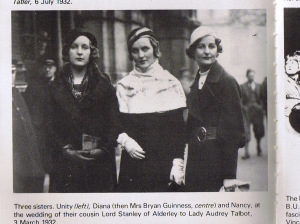So, had the publishers captioned the photo incorrectly? I think not. This is indeed a photo of Unity’s elder sister Diana Mitford (later Diana Mosley, after she married the British Union of Fascists leader, Oswald). Unity and Diana were the Nazi Mitfords, and often seen and photographed together. Both went to Munich before the war to hang out with Hitler, and attended the first Nuremberg rally, but it was Unity who actually stayed on until war was declared. (That said, Diana and Oswald were married in 1936 the house of the Goebbels, Joseph and Magda, with Hitler in attendance, so they were no slouches in the Nazi department.)