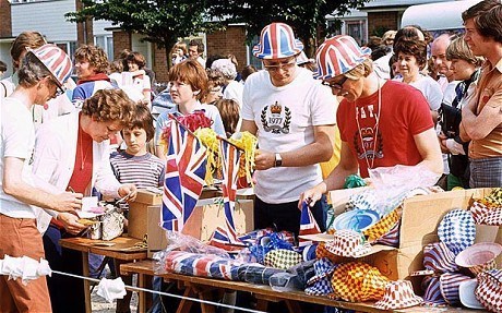 Hey, I celebrated the Queen’s Silver Jubilee along with everybody else in 1977. I was 12 and not yet a republican. The country had three TV channels and most cinemas had one screen. We didn’t have a street party in Winsford Way, because it was a through road, but there was a modest crisps-and-jelly affair for the kids in Jean and Geoff’s back garden, which I seem to remember appreciating, despite being the oldest there and approaching the quagmire of teenage. Mum bought us Jubilee-themed t-shirts – white with a Union Jack “J” on them, I think – and we wore them without protest and certainly without irony. My brother and I rode our bikes round the estate to see which houses had decorations outside. It was quite a few.