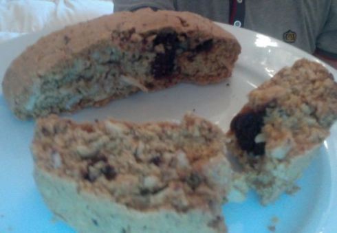 In a possibly over-forensic manner, I worked out how much I’d spent on flour, sugar, eggs, butter etc. (this is easy to do if you know the price of the food you buy), and the grand total, discounting the electricity I’d used to bake the biscotti for a total of 40 minutes, was £3.88. Now, I could have reduced this total sharply by not using organic eggs, organic almonds, organic butter and – added ingredient! – about eight squares of Green & Black’s chocolate. (I had to buy the flour round the corner, having spontaneously decided to make the biscotti, and they only had non-organic.) Although I saved on vanilla pods by using a drop of essence, I used flaked almonds instead of whole, as I had some in the cupboard; next time, it would be much cheaper to smash up whole almonds bought in big bags. In other words, I reckon it could be done for closer to £2. Even at my organic price, that’s about 8p a biscuit, but at £2 it would be more like 4p. I sometimes treat myself (those words) to a shop-bought box of biscotti and they cost £2.19 for about 20 biscuits – the rest is packaging – which is almost 11p a biscuit. Over 40 biscuits, that’s a saving of £1.20, which would rocket to £2.80 if you spent less on the ingredients, as I will do next time. If you buy a single biscotti in a high street coffee shop, it’s 99p. You don’t need to do the maths (which is lucky, as I am shit at maths). The maths does itself.