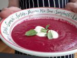 In the past couple of weeks, as you can see, I have made beetroot soup, a banana cake, and a radish and mint soup (which tastes a lot nicer than it looks). My imperative for doing this has been to use up what we’ve got. My fruit and vegetables are delivered, in a box, and that means you don’t know exactly what you’re going to get. One week, you might get 700g of beetroots, which is exactly the amount required for Delia’s beetroot soup recipe, which is free online [see: Factsheet at bottom]. Rather than see the beetroots going wrinkly and unloved in a drawer, I used them, and it serves four, which means it serves me, four times, over four days. The banana cake was, like the biscotti, a cunning method of giving myself a sweet treat in my packed lunch which obviates the need for me to buy expensive cakes and biscuits in coffee shops, or the overpriced British Library café.