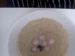 The almond and vanilla biscotti came from a Waitrose recipe. I used plain four instead of self-raising, so added bicarb and baking powder. I also added choc chips. The beetroot soup, Polish apparently, is a Delia recipe; again, adapted – I added red chilli for kick, and have tried both bacon for the stock, and the giblets from a chicken. The radish and mint soup was Hugh Fearnley-Whittingstall’s, although it’s designed to be eaten cold and I warmed mine up and used yoghurt instead of creme fraiche, and paprika for cayenne pepper (again, through necessity), which may have changed it for the worse. The beautiful banana cake – which lasted me for a week and a half, rationed to one slice a day – is by Dan Lepard, from the Guardian magazine. (I must admit, I was so exited by the outcome, I sent him the photo on Twitter, and he replied and everything.)