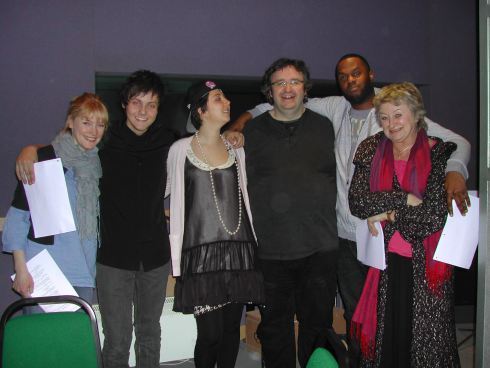 We're on schedule as I write, which is just after lunch. Our producer and production co-ordinator have created a spreadsheet that must be obeyed. As a writer, you just merrily knock this stuff out, without too much of a care for how long scenes are, or how many characters are in it, or whether or not a character is heard enough times in a scene to suggest that they are still there – all stuff that presumably becomes second nature the more you do radio drama, which is what this essentially is – but on the day, these poor actors have to make sense of it, hit their marks, live out the fiction in a plain studio and give their best performance. The Easter family of four has become five in Series 2, and with the addition of Harvey's racist Mum for a couple of episodes (played with fabulous gusto by the amazing Sorcha Cusack of the Cusack dynasty), which means some scenes have six voices, which is both an amazing sight to behold through the glass, and an amazing thing to hear through the speakers, but quite a headache to choreograph.