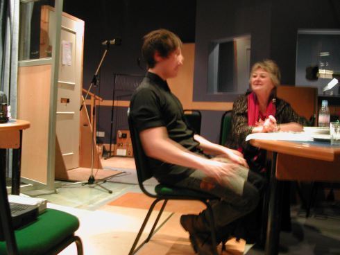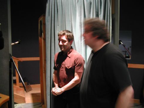 In these pictures, you can see me having to act opposite one of the greats, Benton himself. It's a foolish position to put oneself in; equally, it's nice to be able to watch a professional working, close enough to smell his after shave, and for him to be able to smell your fear. (Mark Benton is currently appearing in A Midsummer Night's Dream at the Lyric, Hammersmith, which means that after a hard day's reading out my nonsense, he has to go to a theatre and read out Shakespeare's. I don't imagine there's much difference between the two.)
