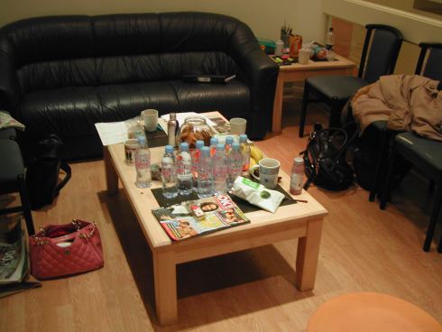 Lunchtime is important in life. In drama, doubly so. You need to recharge your batteries. And although someone from Equity does not come round with a stopwatch to ensure you get 60 minutes, it's accepted that lunch is non-negotiable. And even on a low-budget radio production, you get nice Pret sandwiches, there's constant hot and cold running drinks, and the biscuit jars miraculously refill throughout the day. This is the actors' green room area, with a couch suitable for power-napping on if you're not required for a certain length of time, or if you've got a new baby and you're getting no sleep at home. (Radio is great, in that you get to hold your script in front of you when you act, and don't have to learn your lines, although some preparation is expected, and its absence is noted.)