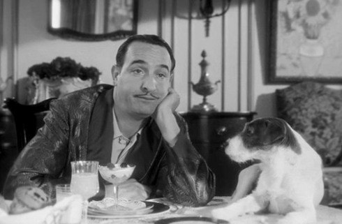 Well, there's the artistry of the exercise. The look and feel of The Artist is utterly convincing. It is postmodern by its very nature – and there are one or two clever, metatextual touches, including an opening sequence in which the main character, George Valentin (Jean Dujardin) plays a secret agent who is being tortured in order to make him talk – but on the whole it's played as a sincere love letter to the silent form, and the silent age. Like Singin' In The Rain, its rise-and-fall story is rooted in the difficult transition from silent movies to talkies, but it deals with this in a soundless way. With just period music – and one isolated, breathtaking transgression which I will not spoil – The Artist tells its simple story using visuals, "mugging" and traditional title cards (exquisitely rendered, of course).