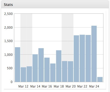 Incidentally, if you got wind of the Andrew Collins Twitter controversy yesterday, I'm going to write about it in a separate blog entry. And while I'm here, this is a graph of my stats for the past week. Look how solidly popular these diary blog entries are. (The left-hand scale indicates "visits.") This doesn't mean I can, or will, keep it up – indeed, I'm looking forward to stopping at the end of today – but I will say it's been a fun experiment, simply to see if I could do it. I used to write day-to-day blog entries on the 6 Music website in 2005, but stopped when I moved over to my own blog in 2006, and although some of those early entries were about mundane, personal things, I pulled up the drawbridge about four or five years ago, and I'm not about to start it again. But writing about my working week seems like a reasonable compromise.
