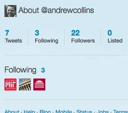 Anyway, out of curiosity, I looked up @andrewcollins, clearly jealous of him for being such an early adopter of Twitter he was able to have his own name in full. Well, here he is.
