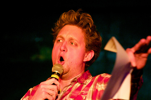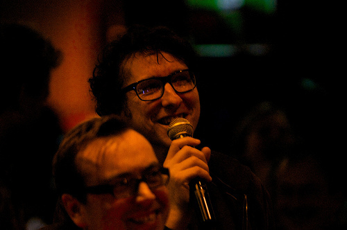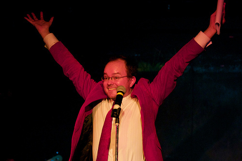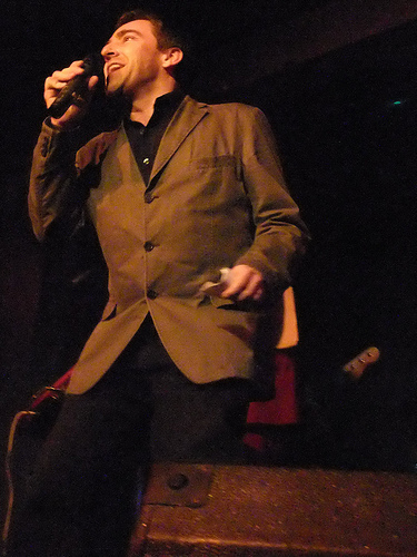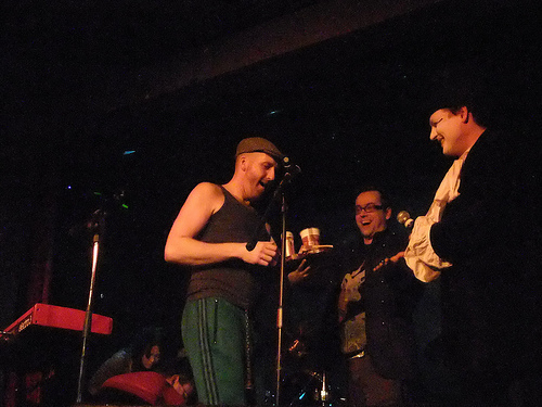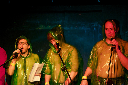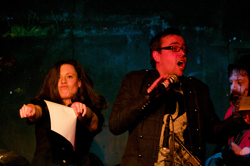 Another crazy, crazy, crazy night out at Karaoke Circus. I've been slack and missed a couple of consecutive KCs in London, including the Christmas extravaganza, although I was lucky enough to be at, and a part of, the Edinburgh circus tent special in August. Anyway, having moved the circus to my half of London, boldly relocating to Vauxhall – home of the RHINO NOT FOR SALE sign – and specifically to the Royal Vauxhall Tavern, one of the gayest bars in the world, you might call last night's something of a rebirth. The venue was just perfect: cosy and circular, and with more gents toilets than ladies, but big enough to accommodate and in many cases seat a teeming intake of "Yay!"-shouting, homemade-cake-eating comedy nerds. And the staff were terrific, especially Paul the barman who got up and did a criminally soulful open spot of Dock Of The Bay and won! All round, a happy evening, with highlights too many to list, although I'll chance a couple, for fear of picking favourites: Robin Ince's Rise, which even the eminently adaptable house band of Martin, Danielle, David and Foz couldn't breathe life into, and which Robin turned into irascible performance art (increasingly his metier); Howard Read's Rhinestone Cowboy which involved actually vandalism; husband and wife team Margaret Cabourn-Smith and Dan Tetsell making the most of their babysitter by reimagining Beyoncé and Jay-Z's Crazy In Love; and Pappy's bringing the house down, very much in the spirit of Karaoke Circus's new gayness, with a costumed and then not-costumed celebration of It's Raining Men. A pair of denim shorts was thrown.