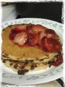Lately, I’ve been looking for ways to eat a bit healthier. These pancakes are one of my favorite comfort foods and cutting back the carbs in the recipe as well as adding more protein actually made these even tastier to me. They’re not carb-free, but they contain less carbs than the original recipe.