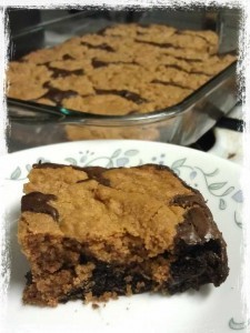 Yeah, I did it. I combined cookie dough with brownies. And no, I’m not the first to try it. I actually got the idea from Pinterest when someone posted a pic of fudge brownies dotted with chocolate chip cookie dough (the post I got the idea from is here). Only, I wasn’t in the mood for chocolate chip …I wanted peanut butter.