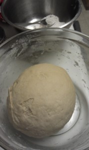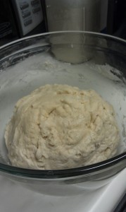 Put the dough on a well-floured surface or in a big bowl and knead well. Sprinkle the remaining flour mixture as needed, whenever you feel the dough get sticky under your palm. Actual amount of the flour mixture needed will vary depending on ambient humidity, etc. (Hey, it’s bread, what did you expect?)