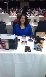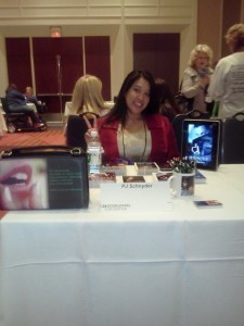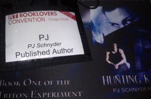 Not only had I signed lots of book, but I also signed swag and cover flats, bookmarks and rack cards. As special treats for my readers, I also had Hunting Kat t-shirts and Terra’s Guardians t-shirts to give away as well as PJ Schnyder gym bags.