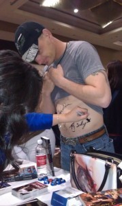 I even signed a few unconventional things…like Jesse’s abs. Other creative keepsakes I was asked to sign included eReader covers, tote bags and tshirts.