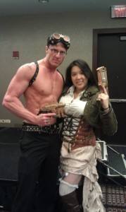 I made sure to drop by the Steampunk Gaslamp Gathering to support the my fellow steampunk authors. Cover model Scott Nova had asked me in advance to lend him a few steampunk accessories so he could help the ladies out. The man does steampunk pretty well, I’d say.