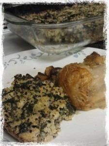 In a large bowl, stir quinoa and eggs until thoroughly combined. Stir in cottage cheese. Add kale and onion mixture. Salt and pepper to taste.