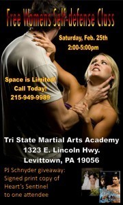 At the Free Women's Self Defense Workshop tomorrow at Tri-State Martial Arts Academy, I'll be giving away a signed print copy of Heart's sentinel to one attendee. I'll also be giving out fun swag to everyone. For people in the NJ/PA area, I hope you'll join us.