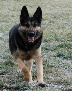 German Shepherd Dogs are intelligent, strong willed and loyal. Kaiser, in particular, is responsive, sensitive and very driven to "work." Because of his very strong prey drive, he requires careful supervision around smaller animals, even other dogs. His nurturing side comes out with small humans, though, and he's often trying to play with children. He's a little rough and clumsy, but you can see his mind working, learning what the limits are for each particular child.