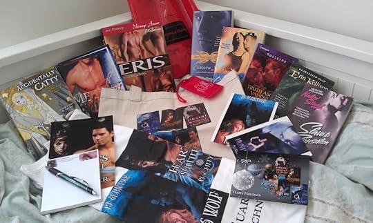Included in this giveaway is a Terra's Guardians tshirt, assorted signed cover flats for my books, a PJ Schnyder tote bag, pen and notepad as well as various books by awesome authors such as Dakota Cassidy, D Renee Bagby, Nalini Singh and more. Plus some fun swag I nabbed in my con travels this past convention season. This giveaway is open to international entrants.