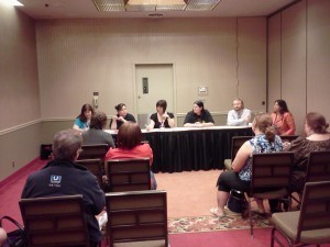 Tilly Greene, RA Vaughn, Rita Sawyer, Jean Murray, Nancy Holzner, and Leanna Renee Hieber were wonderful panelists to join for this fun discussion on details in romance. Our audience joined in on this in a sort of round table discussion, sharing preferences and opinions, personal quirks and pet peeves.