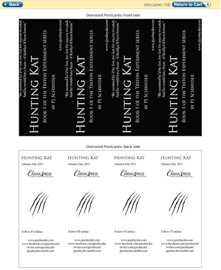 I designed bookmarks to promote my upcoming book, Hunting Kat. This was a new effort for me.