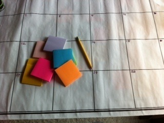 3. Assemble all my tools. Because I plot the specifics of my story as I go (but I'd secretly like to be better organized), I have a plot board on my side table and add ideas on colored Post It notes.