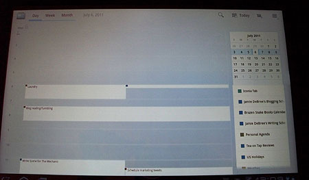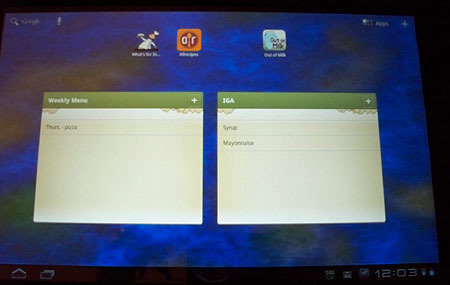 LB: Let's get this thing organized. I need programs for shopping lists, my Google calendars, email, blog reading, social media, and something to keep track of my workouts. A separate task list too, with reminder alarms. I'll need an office suite if we can find one, so I can carry spreadsheets, finish blog posts and do some light idea notations. Oh, and a note program of some sort. *spends hours paging through apps, reading reviews, and looking at screen shots*