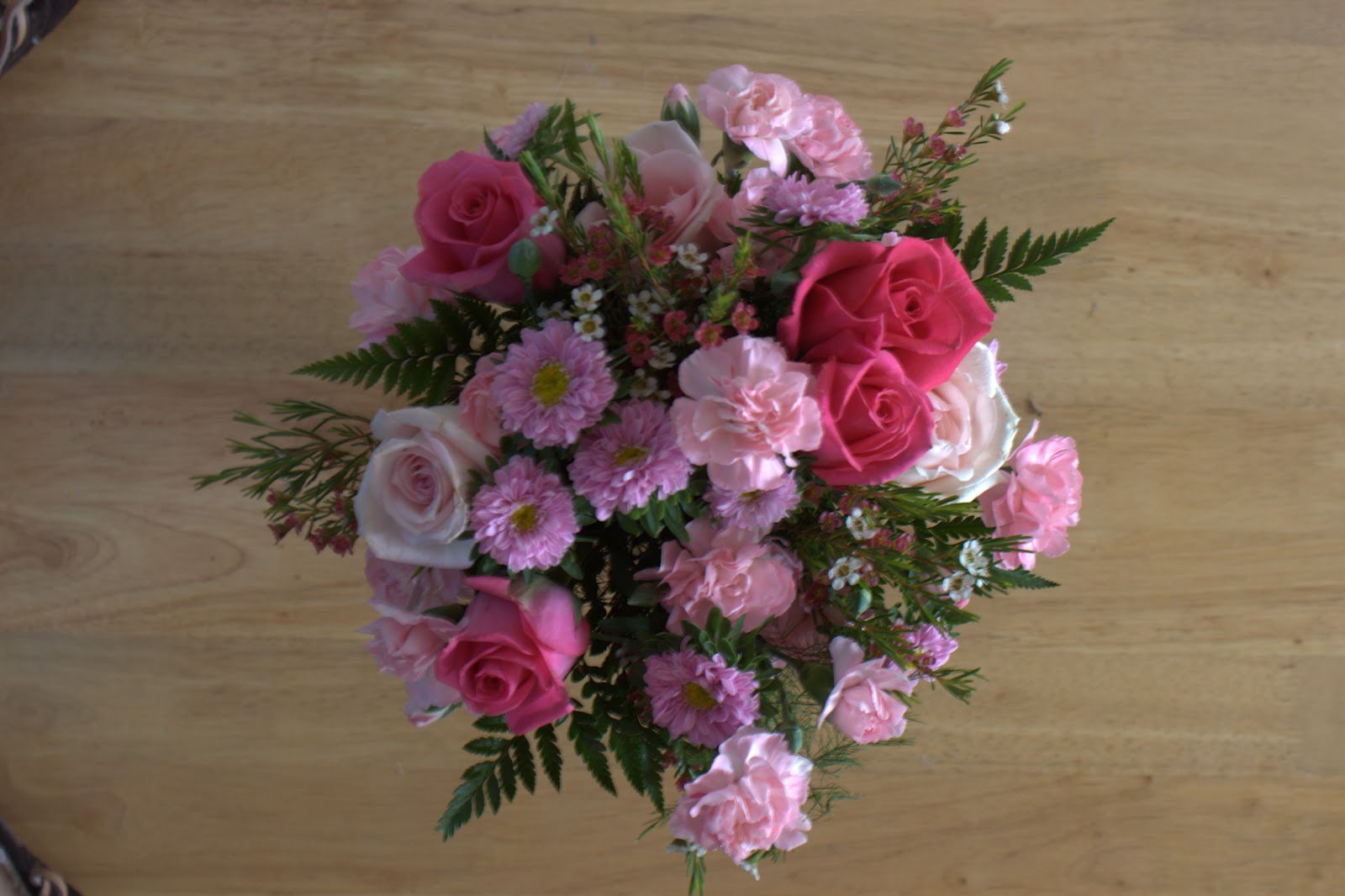 I had a lot of fun tearing the flowers apart and creating this picture. The hardest part was taking the pictures. I had to stand on a tall stool (while praying I didn't fall) and lean over.