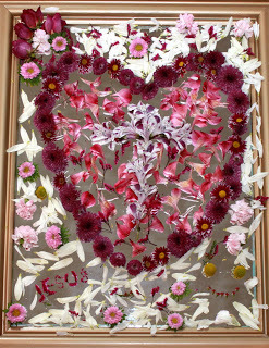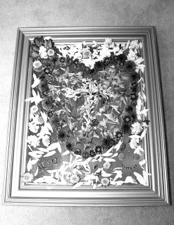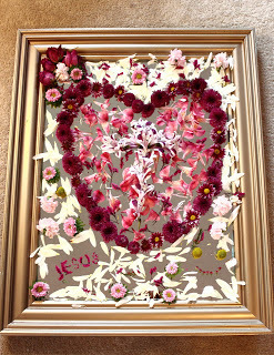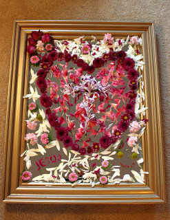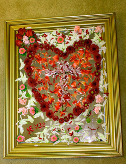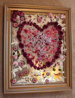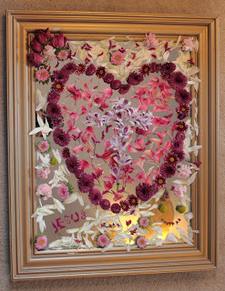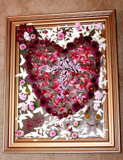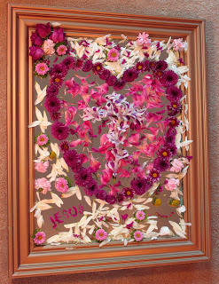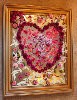 Normally, I'm not a fan of cut flowers. They smell good and are very pretty, for a few days. Then, they wither and die and I feel terrible throwing away something that someone, like my husband or a good friend, took the time to pick out, purchase, and give to me. Being the creative type that I am, I have found a new way to preserve the beauty that God created. Here's the latest installment of Flower Art.