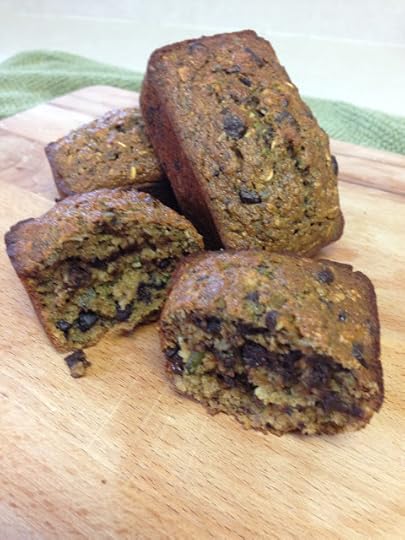 Step 1: put all the wet in a bowl, in orderStep 2: put the zucchini in a food processor and coarse grind, add pumpkin seeds, pulse for a few more seconds until seeds are coarse ground, pour into dryStep 3: Coarse grind oats then chocolate chips, add to dry. Add remainder of ingredientsStep 4: Spray a large muffin tin or mini loaf tray (holds 12) with Pam or other nonstick spray. Fill 3/4 full and bake for 30 minutes in a preheated 350F oven. Remove from baking pan immediately and let cool. If you want large loaf, increase baking time to 45 to 50 minutes.