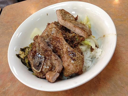 First up, pork chop rice, which featured rice topped with seasoned, stir-fried minced pork, pickled mustard greens — a deliciously sour, tangy, crunchy and earthy preserve vegetable that’s commonly used in Southern Chinese and Taiwanese cooking — and a thick slab of pork.