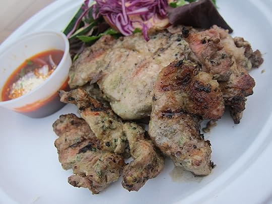 So I ordered a grilled pork chop marinated in garlic, cilantro and white pepper, served with a house-made chili sauce.