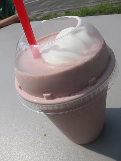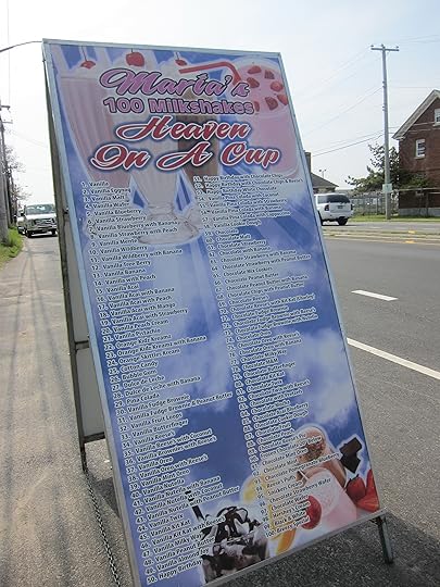 Besides the hot dogs, the big thing here is the milkshakes — 100 flavors, I kid you not.