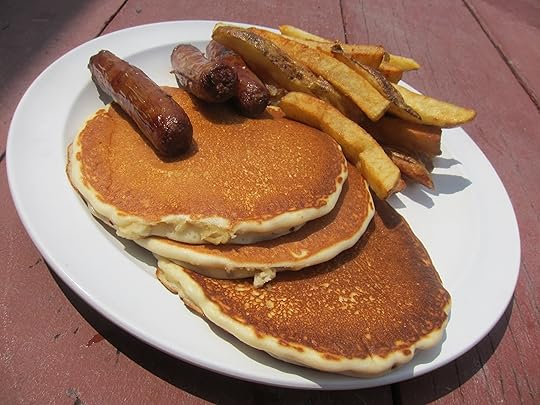 Especially since this perfectly decent platter of pancakes and sausages with fries only cost $8.95.