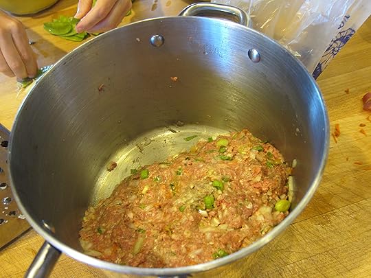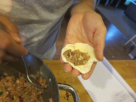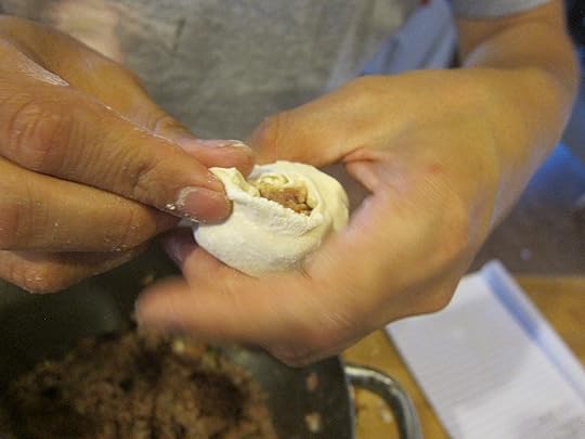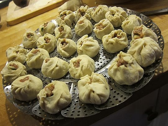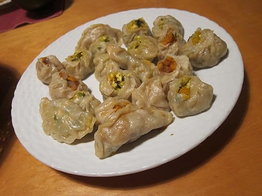 Our little group spent a lovely evening making dumplings together — I think you can tell which ones Togo made and which have the stamp of the rest of us amateurs.