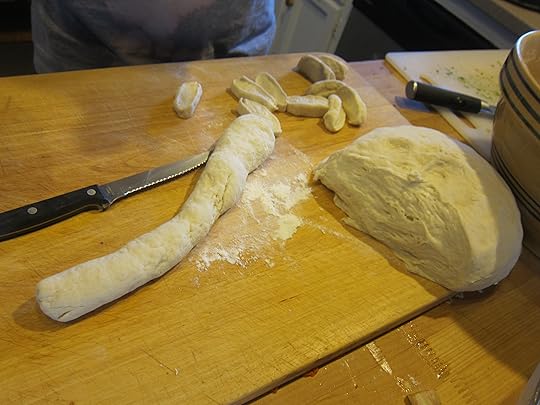 Them roll out the dough into long tubes like Togo is doing over here …