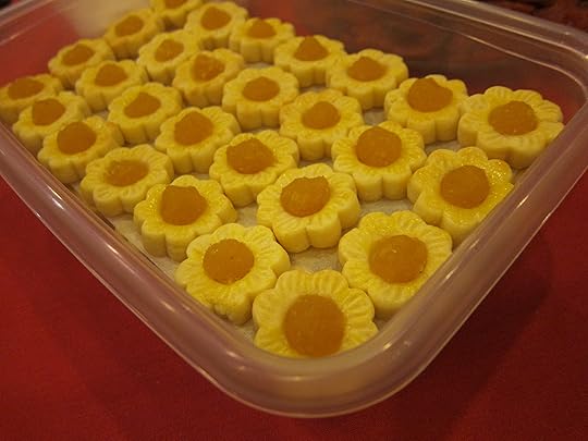 These buttery cookies topped with cinnamon- and pandan leaf-scented pineapple jam are a major Chinese new year offering in Singapore. Because pineapples are gold, these cookies are seen as very lucky. Also, they’re pretty darn delicious.
