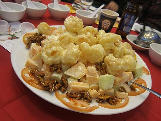 The house walnut shrimp was very nicely fried — we left the bed of warm and slightly greasy mayo-tossed melon largely untouched.