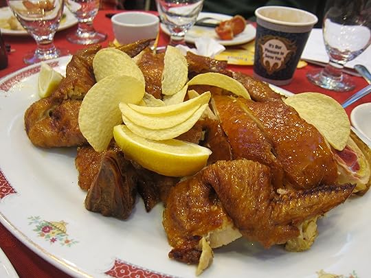 The meal began with another Singaporean tradition — yu sheng, a salad of raw fish and more than 10 other ingredients, each of which symbolizes an aspect of luck or good fortune for the year. Chopped peanuts, for example, represent gold ingots; plum sauce is supposed to forecast sweetness for the year ahead. (I explain all this a little more in “A Tiger in the Kitchen.”)