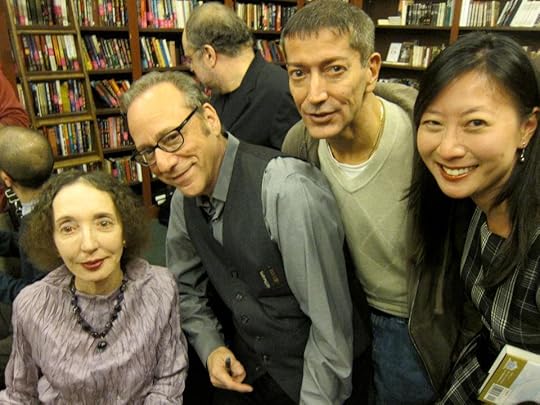 Since I can’t discuss the novel yet, I’ll talk about Singapore Noir. I had long known of Akashic’s Noir prize-winning series — Dennis Lehane edited Boston Noir, Laura Lippman edited Baltimore Noir and here I am with author Kenneth Slawenski at the November 2011 launch of New Jersey Noir, edited by Joyce Carol Oates and featuring a fabulous story by the dashing Jonathan Santlofer (also pictured).
