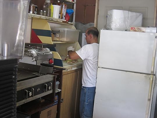 Sergei is the one-man show here — and you can watch him assemble your sandwich through the small window.