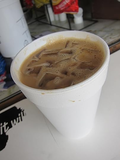 I order a cafe con leche ($1.50 to $2.50, depending on the size) — iced, because summer seems to have arrived early in the Keys this year. And it is delicious. Intensely flavored, slightly sweet, frothy and cold — this coffee hits the spot. I almost wish I’d gotten it hot so I could taste the coffee full on.