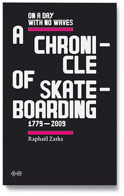 First, most boringly and obviously: the subtitle, A Chronicle of Skateboarding 1779-2009 is not at all a typo or intending to be clever or cute: Zarka brings a smattering of historical examples into play to allow the development of the skateboard—starting for real in the 50′s in the States—to feel grounded historically, but also to try to tease out the Zarka's broader thesis. Which is, ultimately, abstract and hugely cool: that skateboarding is what it is not just because it's pleasurable or whatever but because the machine facilitates and allows that unique relationship between human and city that's unavailable elsewhere (unless you're a die-hard city biker and believe that, which I think is arguable). This all sounds hoity-toity and French and metaphysical, and it sort of is, but I'm telling you, the book is riveting: Zarka's focus stays tightly on skateboarding as an experience which allows flex and flow within it—a static thing made of motion. Skateboarding, in Zarka's able work, is a unique opportunity for all of us to play with and in and against the gray heavy-dutiness of a city. It's phenomenally cool reading: I can think of no recent book which'll so light so many disparate parts of your brain.