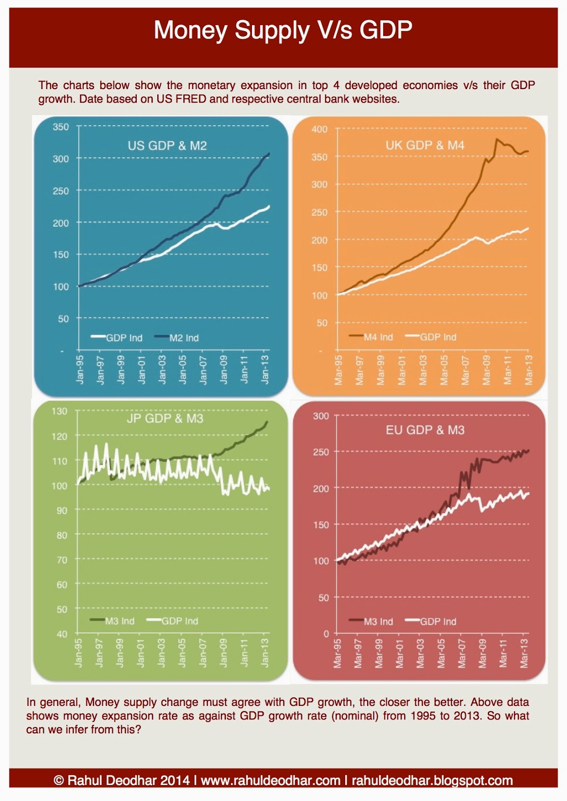 Here is a chart I made showing money supply v/s GDP growth of top 4 developed economies. Tell me what do you think about this.