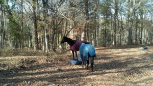 Darcy (in pink) with a pasturemate on her new dry lot, where she gets safe hay, instead of dangerous, sugary grass.