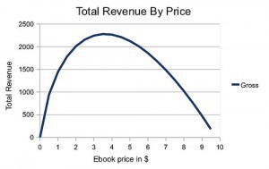 Authors can do either, but the smartest option is to find the sweet spot where you get the highest number of sales and earn the highest amount per book sold, thus generating the highest revenue possible. In 2011, Dave Slusher at Evil Genius Chronicles analyzed book sales data posted by JA Konrath in 2010 to find the sweet spot of his pricing vs. revenue numbers. Read his post if you’d like a more in-depth analysis than what I’m going to post here.