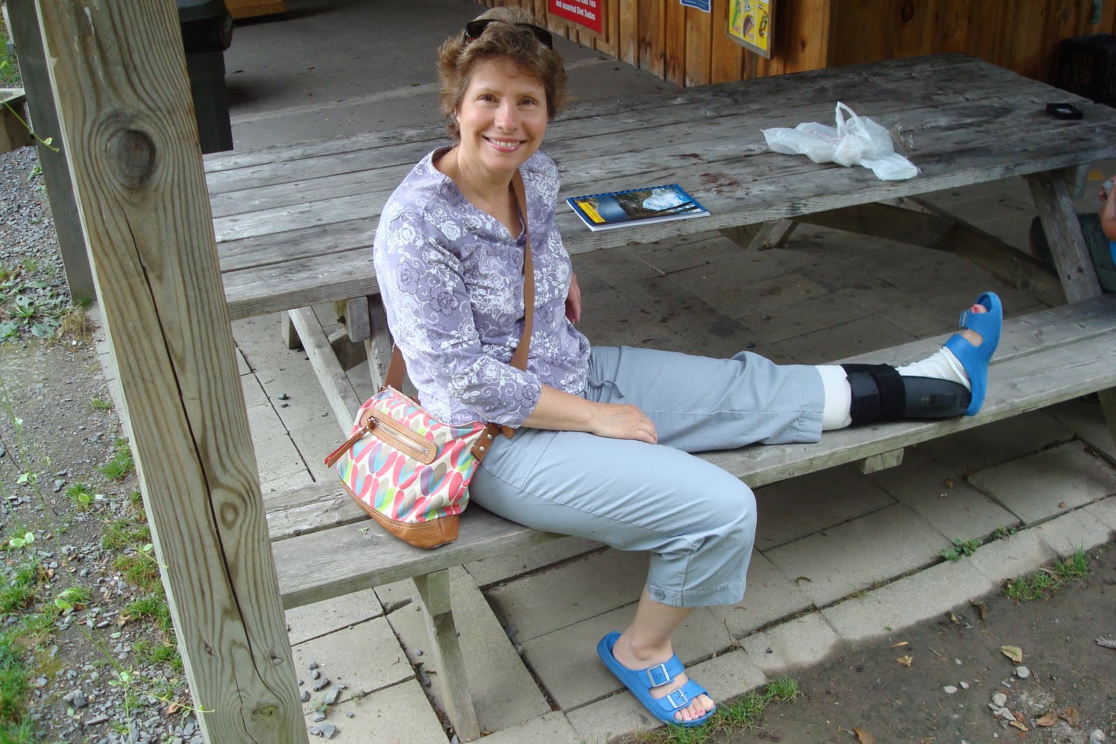 I wanted to see a small waterfall near our resort (Buttermilk Falls) and had to cross this uneven bridge to get there. I was careful, though, since I didn't want to break my other ankle…