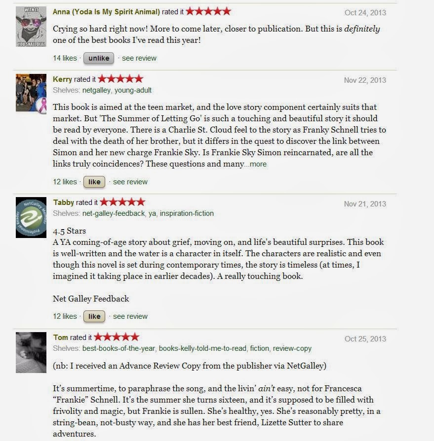And, THE SUMMER OF LETTING GO is out in advance copy and getting some really amazing early reader reviews.