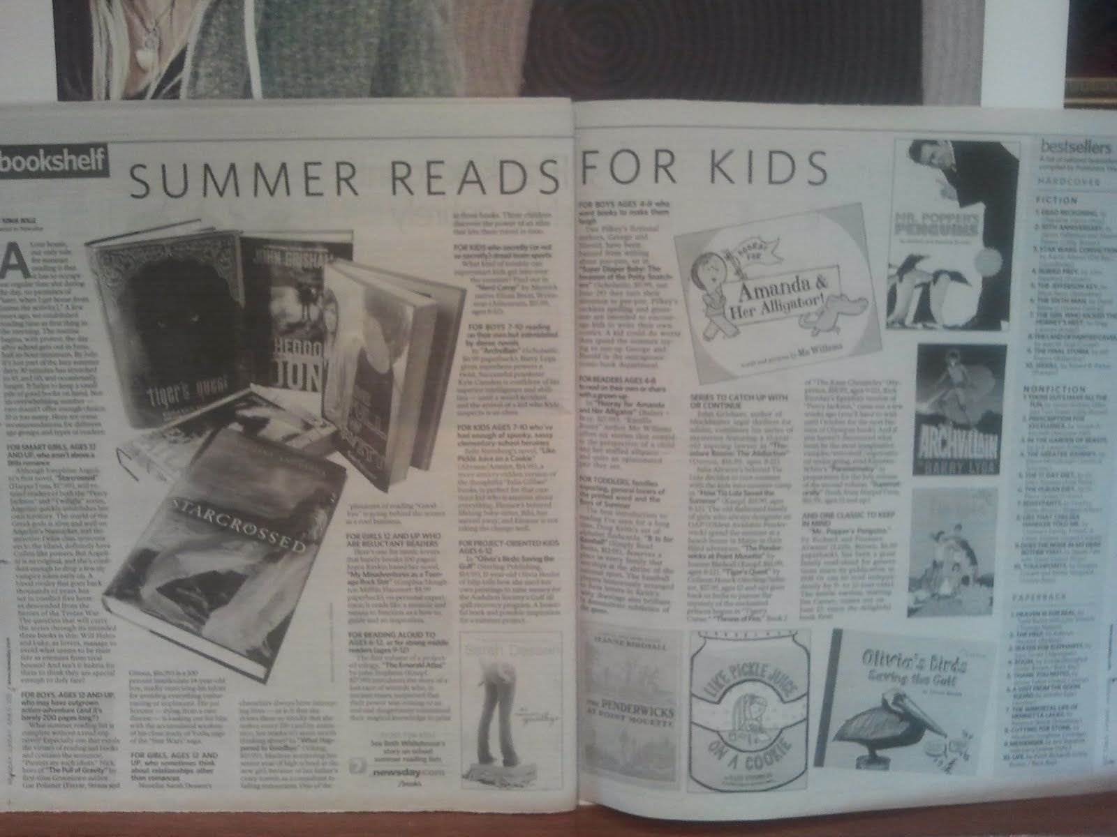 Also, here's a huge highlight. Opening up Newsday to find this unexpected Summer Reading spread with your book next to John Grisham's.